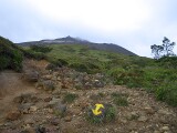 東北自動車道・那須インターから県道17号線を西へ。日曜日ながら早朝の道路は交通量も少なくスムーズ。道はしばらく上り坂が続き、そのままボルケーノ・ハイウェイ(那須高原有料道路)に差しかかる。まだ6時前とあって辺りに人影はないようだ。ボルケーノ・ハイウェイを登りきったところが駐車場で、まだだいぶ空きがあるものの、早々と到着した登山客も多い。それにしても皆さん立派にフル装備でどこまで行くのかしらん。一方で「Tシャツ・短パン・手ぶら」という勇者もごくたまに見かけるのではあるが。