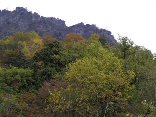 荒菅沢から再び登りへ。荒菅沢の辺りの紅葉がまさに見頃で、ここからは急な坂が続き、頂上に近づくにつれ岩場が多くなる。道幅が細いため登山者が多いと待ち時間ばかり長くなってしまうのだが、案の定この日も混み合っていた。頂上まで残す距離はそれほど長くないのだが、時間の都合で仕方なく途中で引き返した。