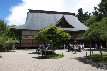 世界文化遺産登録から1年、なかなか訪れる機会が無かった中尊寺を訪ねた。早朝は人影もまばらで、静かな杉木立の参道に足を踏み入れれば周囲は静寂そのものである。境内には「いろはもみじ」が多く秋の紅葉狩りはまた見事であろう。やがて境内を歩いているうちに団体の観光客の姿も目立ってきた。奥州藤原氏ゆかりの寺であり金色堂には藤原清衡、基衡、秀衡の遺体が安置されている。総金箔貼りの金色堂は1960年代に解体大修理が行われ、ほぼ建立当時の姿が復元されたという。 現在は覆堂と呼ばれるコンクリート造りの建物で覆われており、風雨から守られているそうである。しかし堂全体が金色に輝くあまり、堂内に安置されている仏像はやや目立たない趣である。