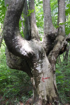 ブナ原生林には奇形ブナがあちこちに見られるが、これは奇形ブナの中でも一際大きい奇形巨大ブナで、幹周りは7.26メートルあるそうだ。