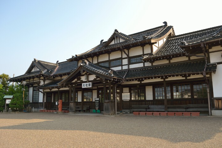- 2010年に改築された駅舎は檜皮葺きで、駅舎正面が猫の顔をモチーフとしたデザイン