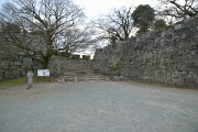 櫓群を抜けると、今度は傾斜が違う二様の石垣の見られる場所に出る。向かって右手の傾斜が緩やかな石垣は築城当時のもので、左手の傾斜が急な石垣は細川時代に増築されたものらしい。