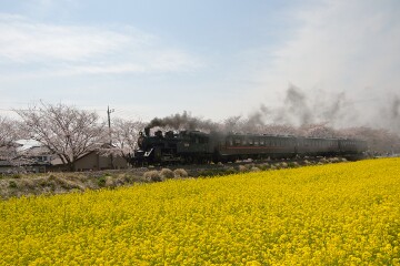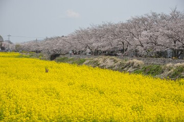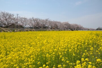 北真岡駅から西田井駅間の真岡線沿いに桜と菜の花が咲き誇る「桜・菜の花街道」がある。