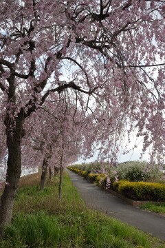 最後は五行川桜づつみを散策した。桂橋-大根田橋間の堤防上にしだれ桜が植えられており、桜並木がおよそ800m続いている。