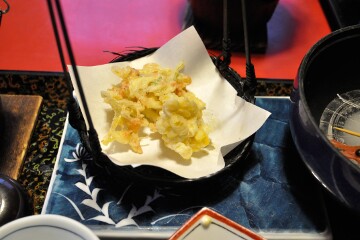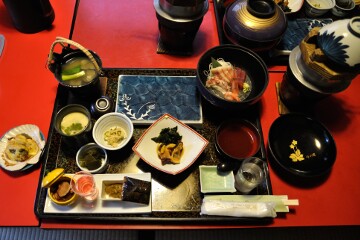 宿泊先は奥松島の月島にある民宿「新浜荘」である。魚料理の数々に加え、夏の味覚の殻付きウニが食卓を飾った。