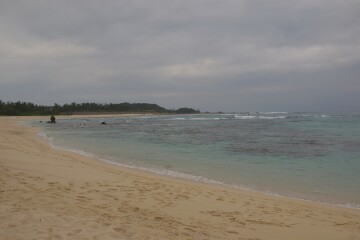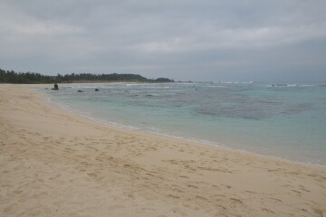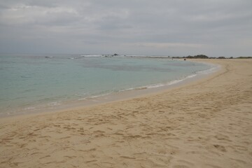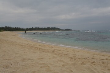 ヤドリ浜は加計呂麻島と奄美大島に挟まれた海峡に面している穏やかな砂浜である。ホノホシ海岸から程近いが景色は全く異なる。