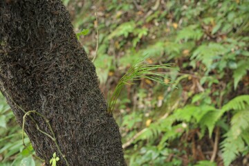 - 常緑樹林の林床や林縁などに生えるトクサラン(木賊蘭)の蕾とカゴメラン(籠目蘭)
