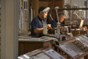 本場奄美大島紬生産の全工程の見学ができる。大島紬を織る際の糸を作る作業は約10ヶ月かかるという。